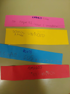 Després escriurem frases amb les paraules que hem trobat a través del llapis al mig.
